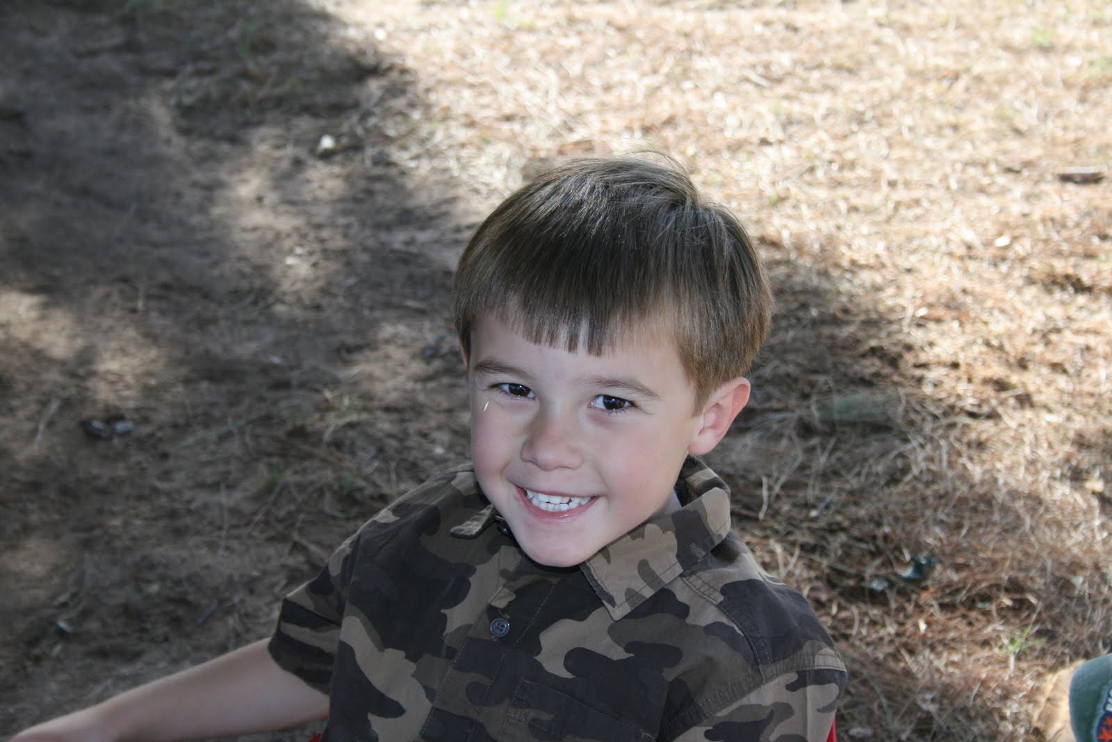 At 5 he still loves cars, old cars especially.. he loves airplanes (Papa has this whole room covered in airplanes hanging from the ceiling), he loves Loony toons, Tom and Jerry and video games on my phone. Anything outdoors, loves riding his bike, and playing with friends. Favorite color is Blue.. favorite food Chicken and steak and anything with sugar. He has a real sweet tooth that comes naturally :). This year he played soccer the team was the Blue Devils (the moms did not come up with that one!) and did pretty good (at least he looked cute in his uniform) . He is doing gymnastics and is really making improvements in his coordination. He joined the church choir and says he hates it, but still goes and smiles doing it! (Zach said the same thing! ) Oh, and loves to hunt squirrels and birds in the back yard and go to the lease with Papa...